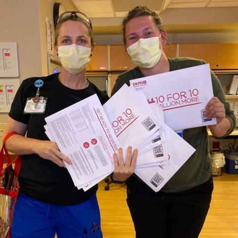 DKMS will send you a tote bag of supplies containing 10 contactless registration kits to be used within one week. We have 10 million donors registered worldwide. We want 10 million more. Help us reach this goal by swabbing at least 4 people in honor of these 4 moms! These supplies will be at no cost to you.